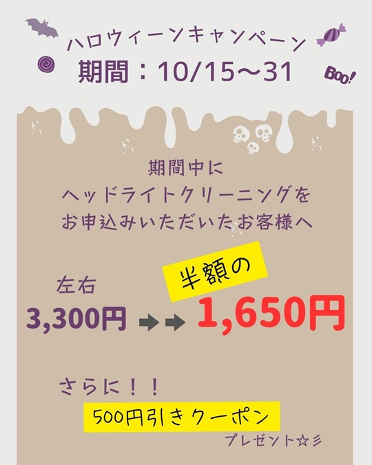 『ヘッドライトクリーニング』を半額でできるキャンペーンのご案内です
